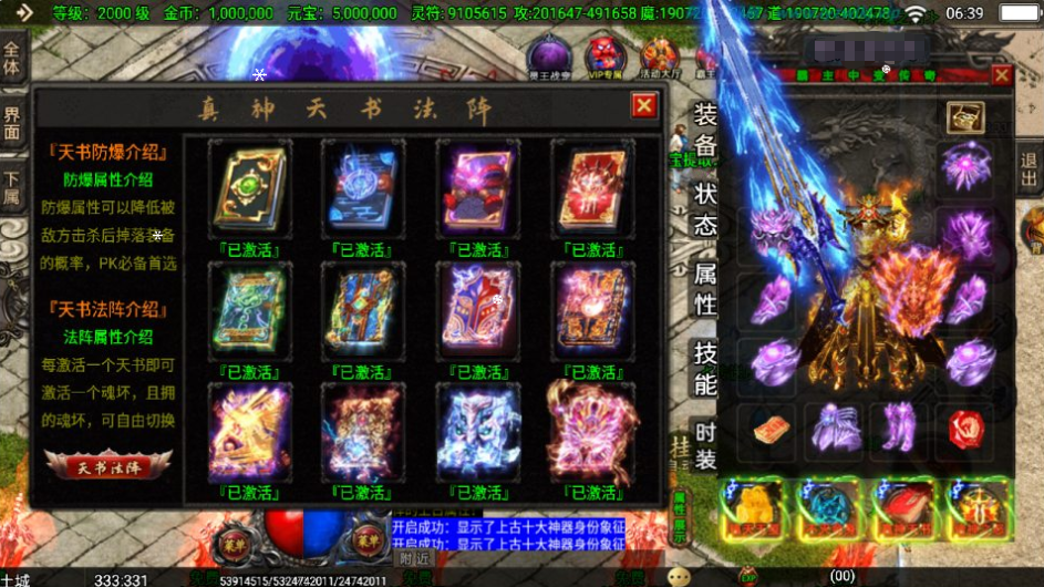 5.新的玩法内容,翻新天书功能、神器功能、生肖面板等!